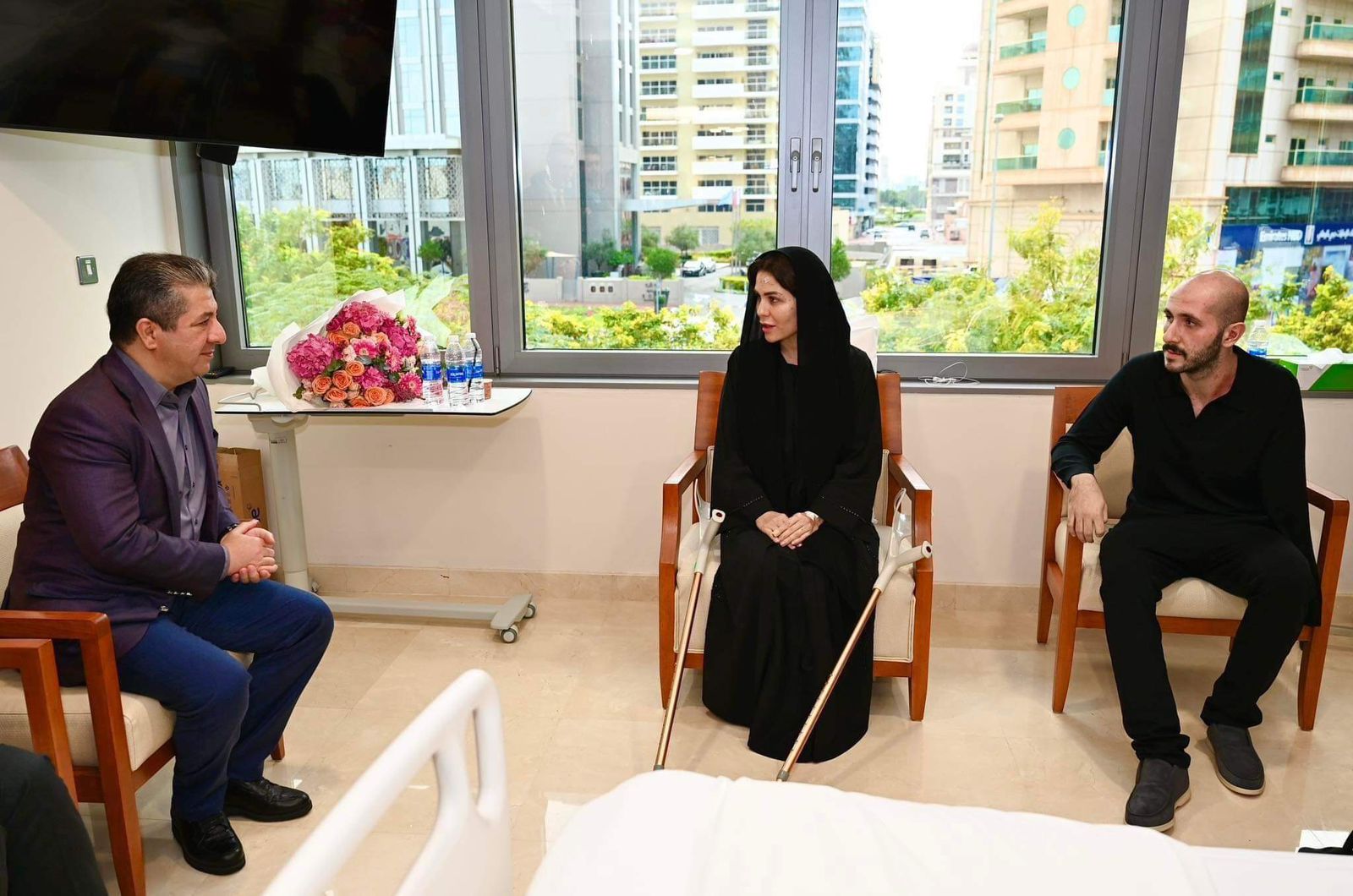 مەسرور بارزانی،سەرۆکێ حکومەتا هەرێما کوردستانێ سەرەدانا هەڤژین و زارۆکێ شەهید پێسڕەو دزەیی یێن بریندار کر